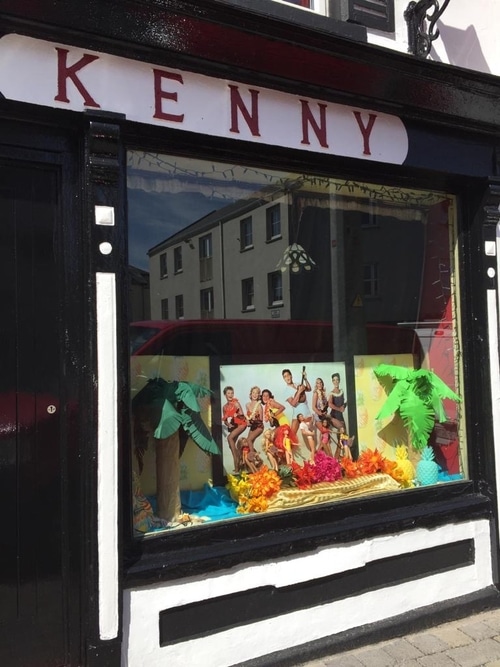 Each season at Kenny's Bar brings an anticipated new creative window display. With a background in fine art and a creative mind, Rhonda Savage excites the locals with her quirky mind and inventive images and crafts to delight the passer by. This last year has also seen the nimble and talented Eileen McConigley showcase her skills and innovation - Runners up in the 2019 Dubai Golf Window Display Competition & winner of The Clare Champion Winter Window Display Competition 2020.
